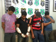 O Complexo de Operações Policiais Especiais (Cope) apresentou na manhã desta sexta-feira, 25, uma quadrilha acusada de roubar cargas e veículos em rodovias que ligam Sergipe a Alagoas. Quatro homens foram presos: José Cícero da Silva, de Alagoas, Amaury Dias de Santana, de Propriá/SE, José Leandro Santana Santos e Anderson Ferreira de Aracaju/SE. Quadrilha acusada de roubo de carga e veículos (Fotos: Portal Infonet)