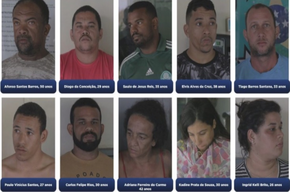 Foram presos: Kadine Prata de Souza, 30 anos; Saulo de Jesus Reis, 35 anos; Diogo da Conceição Santos, 29 anos; Afonso Santos Barros, 50 anos; Paulo Vinicius Silva Santos, vulgo "Babu", 27 anos; Tiago Barros Santana, vulgo "Titi', 33 anos; Carlos Felipe Oliveira Rios, 30 anos; Ingrid Kelli Brito dos Santos, 26 anos; Adriana Ferreira do Carmo, vulgo "Vudu", 42 anos; e Elvis Alves da Cruz, vulgo "Ninho", 38 anos.