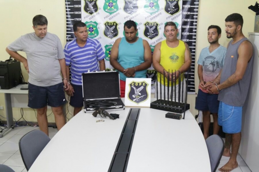 Os homens foram identificados como Tenisson Silva Santana, conhecido como “Tenisson Cabeleira”, 50 anos, apontado como líder do grupo; Edson dos Santos, vulgo “Edson do Ferro Velho”, 37 anos, responsável pela estrutura financeira do grupo; Rodolfo Aparecido de Souza, 22 anos; César da Cruz Silva, 23 anos; Edmilson Souza Santos, 45 anos; e Rafael Picasso, que estava com mandado de prisão em aberto pelo cometimento do crime de homicídio no estado de São Paulo.