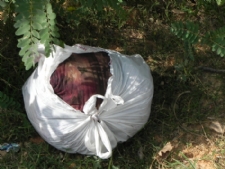 pescoço, foi executada em outro local. Tudo leva a crer que aqui foi apenas um local de desova, já que o corpo está um pouco enrolado com um material parecido com carpete, ou algum tipo de lençol grosso. Nós também encontramos uma bolsa plástica com panos sujos de sangue próximo ao corpo”, relata.