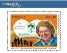 O selo expõe a imagem de Zilda Arns e as logomarcas do Mercosul e da Pastoral da Criança, fundada por ela. A peça filatélica faz parte da emissão de tema comum aos países do Mercosul que estão trabalhando motivos filatélicos relacionados ao Encerramento da Década da Cultura de Paz (2001 – 2010), instituída pela ONU em 2000. Criado pela artista Thereza Regina Barja Fidalgo, terá tiragem de 600 mil exemplares e valor facial de R$ 1,45.