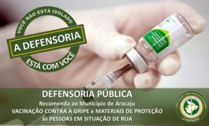 Preocupado com a situação dos moradores em situação de rua, o Núcleo de Direitos Humanos da Defensoria Pública do Estado recomendou ao Município de Aracaju, por meio da Secretaria Municipal de Saúde, que promova a vacinação contra a gripe, indiscriminadamente, à todas as pessoas em situação de rua, assim como àquelas que ocupam espaços públicos e privados, com finalidade habitacional.