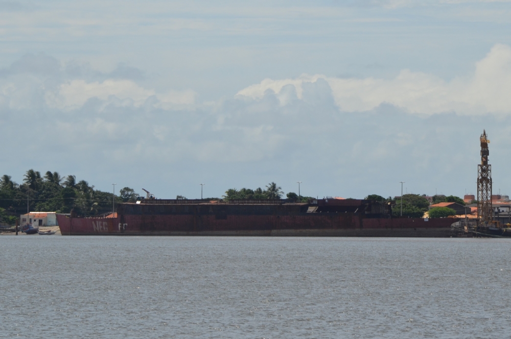 Da vista da avenida Ivo do Prado, já dá para notar o avanço do desmonte do inoperante navio H. Dantas, ancorado há mais de uma década no estaleiro Santa Cruz, na Barra dos Coqueiros, às margens do Rio Sergipe. A sucata foi vendida a um empresário do setor siderúrgico em novembro de 2015 que, desde então, começou a planejar os cortes de todas as estruturas para retirá-lo daquele local. Segundo o proprietário do navio, Sebastião Garcez, até 30 de julho o trabalho deve ser concluído.