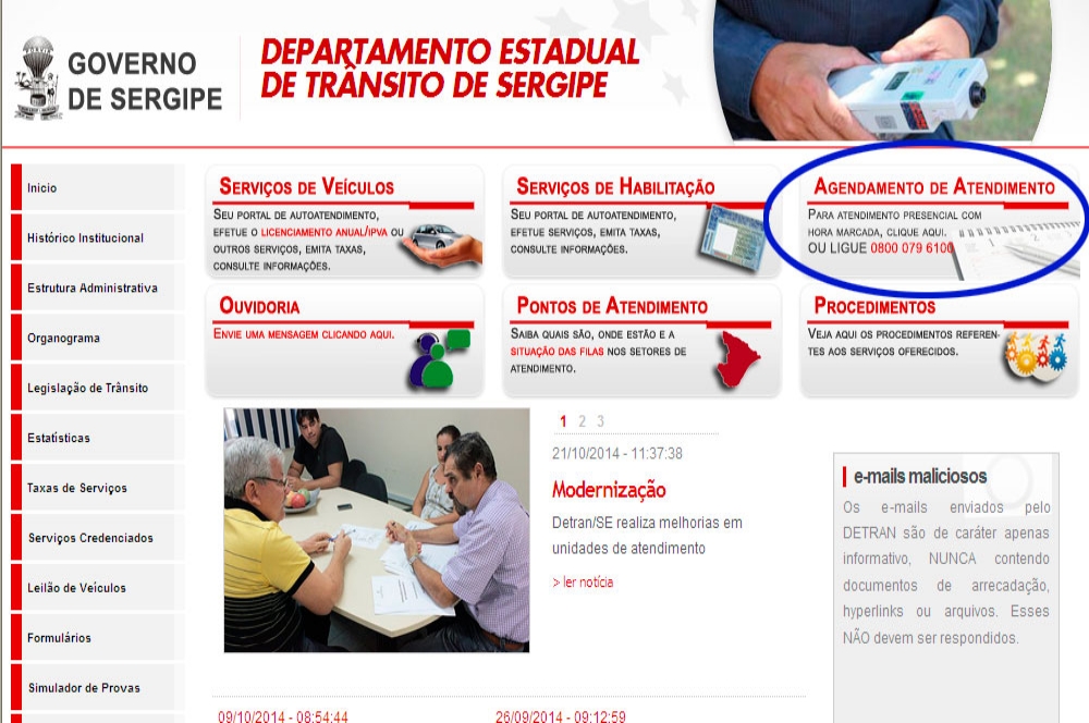 Com a intenção de facilitar o atendimento aos usuários e reduzir o tempo de espera na fila de quem procura os serviços da autarquia, o Departamento Estadual de Trânsito de Sergipe – Detran/SE – implantou mais duas novidades para o agendamento do atendimento presencial: totens de autoatendimento e o telefone 0800-079 6100. Até então, o serviço de marcação de atendimento era realizado exclusivamente através do portal do Detran, mas foi ampliado diante da recepção positiva do projeto.