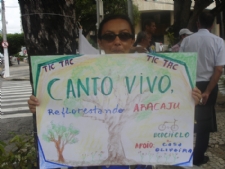A terapeuta Tereza Paschoal simbolizou a importância de se criar uma consciência ecológica frente à preservação ambiental. Ela passou a manhã na Praça Camerino, segurando um cartaz que alertava a estudantes, motoristas e pedestres que passavam pelo local sobre o reflorestamento ambiental.