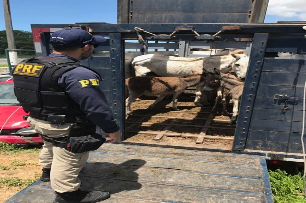 Na manhã de ontem, 16, o caminhão boiadeiro utilizado pela PRF recolheu um animal que perambulava à margem do Km 105 da BR 101. O burro foi encaminhado a um curral conveniado.