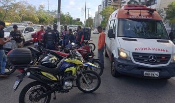 Uma colisão entre duas motocicletas foi registrada na Avenida Beira Mar na tarde terça-feira, 14. Os dois condutores sofreram ferimentos e foram socorridos pelo Serviço de Atendimento Móvel de Urgência (Samu).