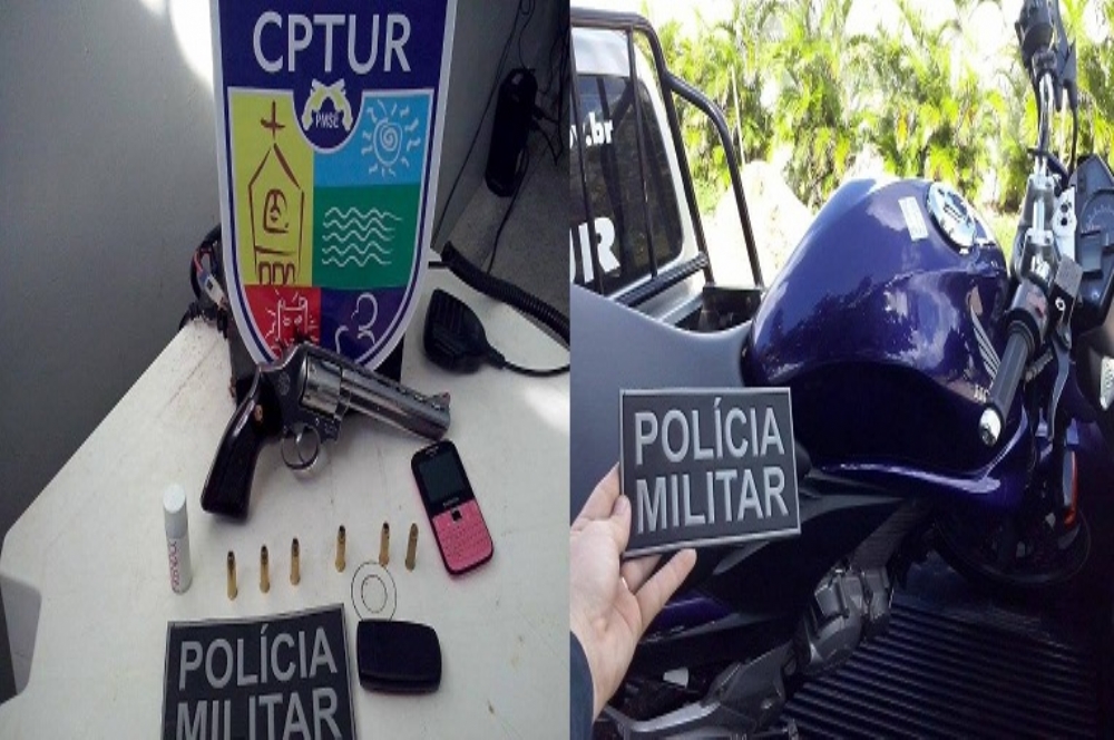 Os bandidos correram do local do assalto e se esconderam em uma oficina, localizada na rua Renato Fonseca. Os policiais conseguiram localizar os bandidos na oficina. A polícia localizou em poder da dupla a chave de uma moto, um revólver com munições, além da moto e um telefone celular.