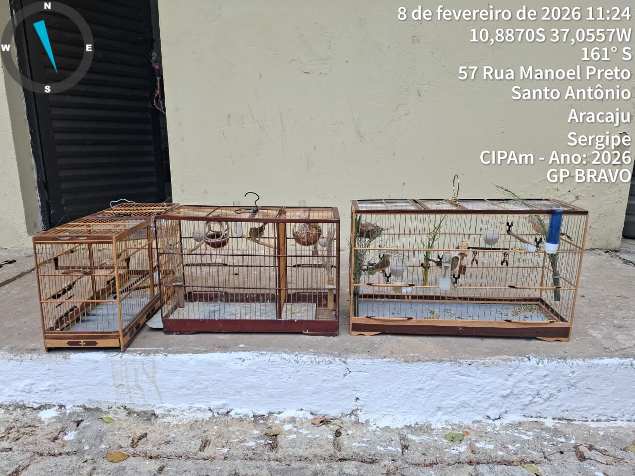 Duas pessoas foram autuadas por criar aves silvestres de forma irregular no Loteamento Nossa Senhora de Fátima, no município de Nossa Senhora do Socorro. A ação policial ocorreu neste domingo, 8.