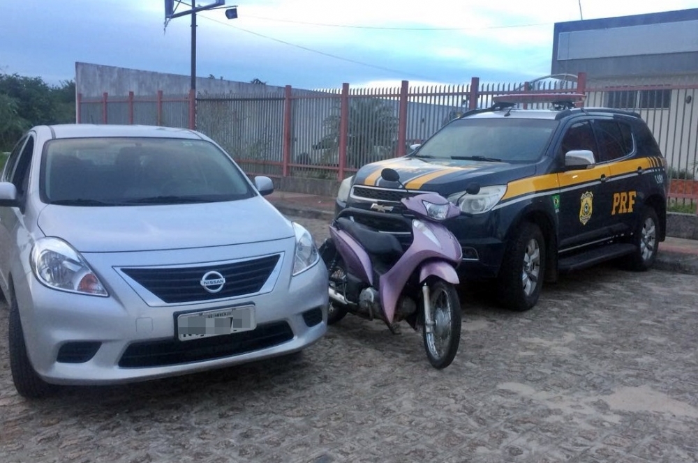 Após a denúncia de populares de que dois homens em uma moto assaltaram um casal de idosos na rodovia e roubaram o veículo em que eles seguiam viagem, os agentes federais iniciaram buscas e encontraram os suspeitos em veículos com as mesmas características, parados lado a lado, aguardando a liberação da via em uma obra de “Pare e Siga”.