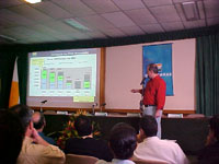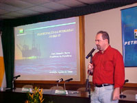 O presidente da Petrobras, José Eduardo Dutra, falou para diversas autoridades – e para a imprensa – no início da manhã de hoje. Em um auditório lotado, Dutra explicou que o objetivo da entrevista era esclarecer informações veiculadas, na mídia local, sobre a 6ª rodada de licitações de áreas para exploração de petróleo, promovida pela Agência Nacional de Petróleo – ANP. O leilão ocorreu no último dia 17 e a Petrobras, segundo o presidente da empresa, arrematou 107 dos 154 blocos leiloados.