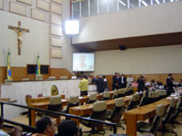 Assim foram os primeiros minutos que precederam a eleição da Mesa. Após a subida de Suzana Azevedo, Marcos Franco e Antônio Passos até a mesa, a situação mudou. Todos se calaram e a calmaria só foi quebrada com o pronunciamento do líder do governo, Venâncio Fonseca, que pediu para que o protocolo fosse quebrado: “Acho que seria mais bonito se a votação fosse uma aclamação entre oposição e situação”, sugeriu o parlamentar, argumentando que como a chapa era única e havia consenso entre as duas partes, a votação deveria ser abolida e o resultado anunciado.