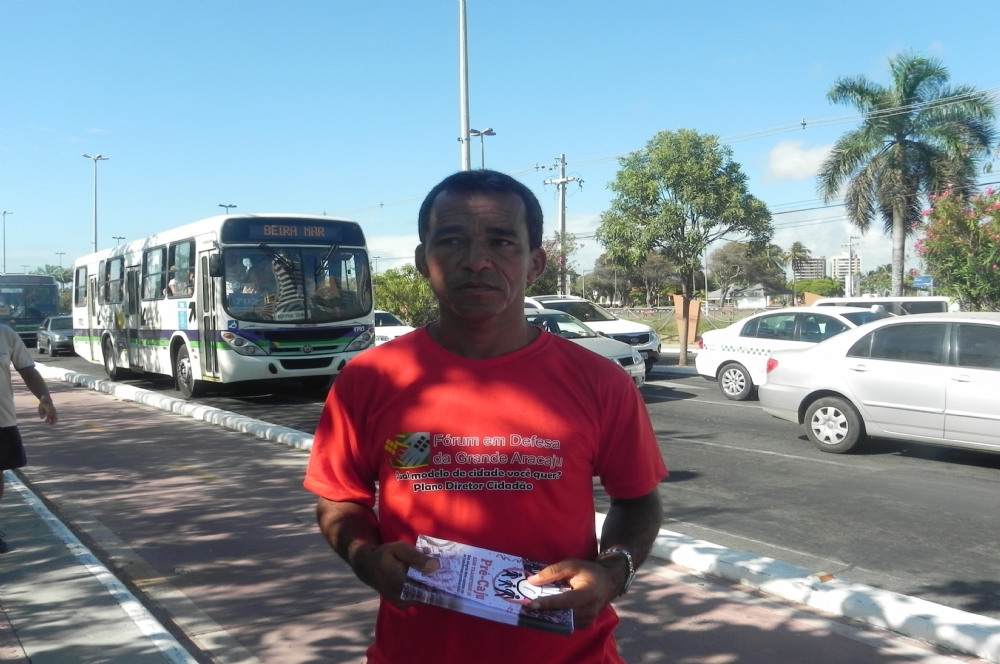 “Daqui não saio! Daqui ninguém me tira! Onde é que eu vou morar? O senhor tem paciência de esperar! 'inda mais com quatro filhos, Onde é que vou parar?”. A marcinha de Carnaval deu o tom da panfletagem dos integrantes do Fórum em Defesa da Grande Aracaju que na manhã desta quarta-feira, 6, distribuíram material informativo sobre a discussão do local do Pré-Caju. A prévia carnavalesca é um dos maiores eventos do Estado e mobiliza todo o aparato do público e privado, trazendo milhares de foliões para a avenida Beira Mar, bairro 13 de Julho.