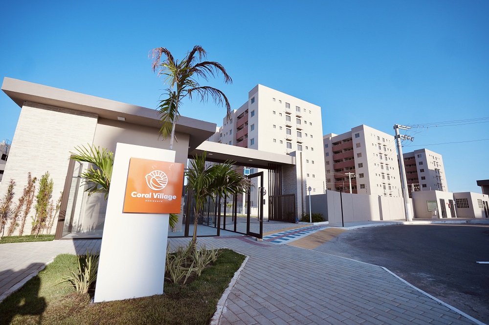 Com três torres de oito pavimentos, projeto arquitetônico de fachadas contemporâneas e unidades entre 58,61 m² e 89,43 m², o Coral Village foi entregue no último sábado, 6, com áreas comuns totalmente equipadas — piscinas com prainha e deck, academia, spa, salões de uso coletivo, quadra de beach tênis, campinho, car wash, área pet, central de delivery e espaços de convivência familiar.