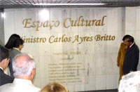 O descerramento da placa de inauguração do Espaço Cultural do TCE/SE foi feito pelo próprio Carlos Britto e pelo conselheiro Hildegards Azevedo acompanhados de suas esposa. O presidente do TCE/SE explicou que um dos motivo de ter sugerido o nome do ministro para intitular o Espaço Cultural foi o fato de Britto ser um fervoroso defensor da cultura no Estado de Sergipe.