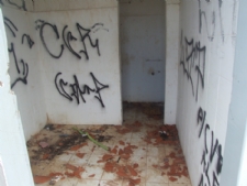 “Eu tenho medo de passar por aqui à noite. Tem muito malandro, e já houve até estupro lá dentro” diz a estudante Karilândia Alves. A jovem afirma, ainda, que não há policiamento no local. “Sei que pelo dia alguns meninos costumam jogar no campinho, mas eu mesma nunca brinquei lá”, Banheiros estão sujos, sem pias e vasos e pichados