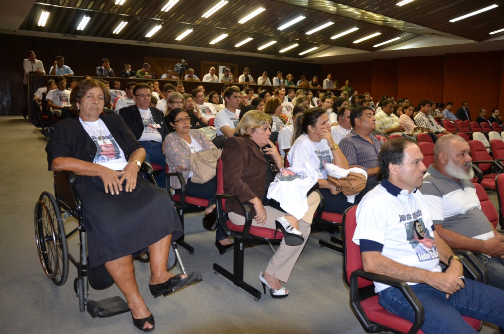 | Dona Renilde [mãe da vítima] acompanha julgamento emocionada, em cadeira de rodas |