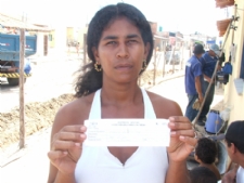 Outra moradora comenta que várias casas já foram entregues, mas 80 famílias ainda não receberam o benefício, e não existem casas para todos. “Tem gente que não era daqui e que pegou casas. Gente que mora na Aruana e que pode até escolher casa aqui, diz Claudivânia Matos, mãe de dois filhos, que mora há 11 anos no local, e há 11 meses estava no aluguel.” Alessandra dos Santos, com o comprovante de cadastro nas mãos