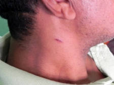 E.P.S. mostra marca de agressão, os bandidos encostaram uma faca em seu pescoço