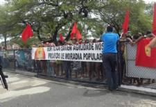 A população que há dias ocupava um terreno no conjunto Albano Franco, junto ao Movimento Organizado dos Trabalhadores Urbanos (MOTU), realizou protesto na manhã desta terça-feira, 18, no Aeroclube de Aracaju, enquanto o governador Marcelo Déda participava de solenidade de entrega de uma aeronave ao Grupamento Tático Aéreo(GTA). População foi de encontro ao governador do estado (Foto: Portal Infonet)
