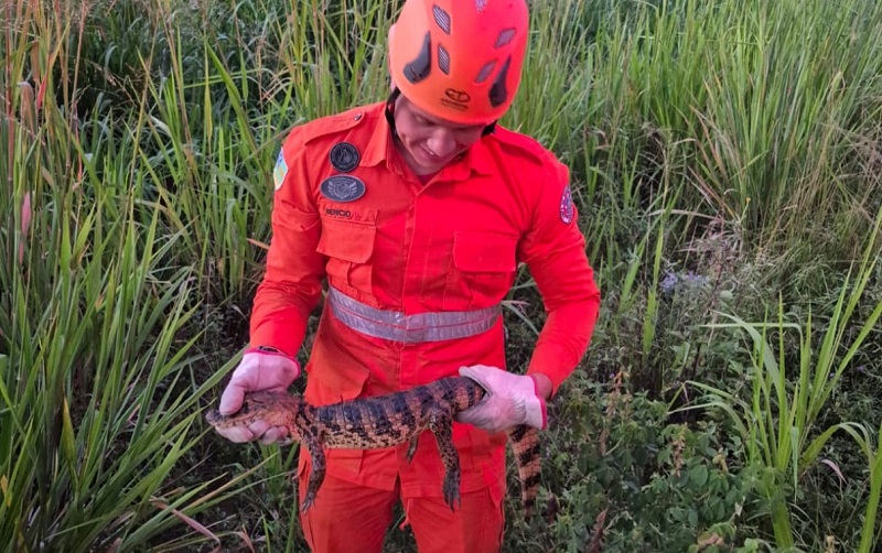 Após o resgate, o filhote de jacaré foi devolvido ao habitat natural, em uma área considerada apropriada, garantindo a segurança dos moradores e a preservação do animal.