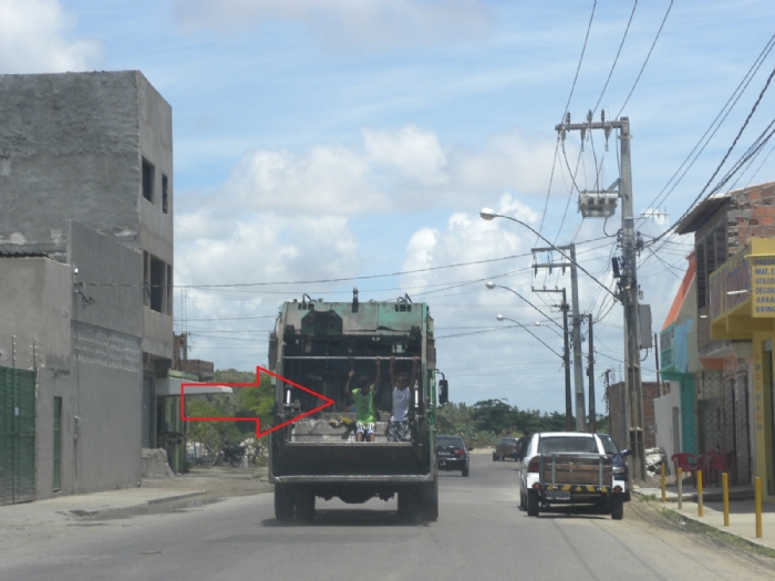 O transporte de crianças no carro de coleta também é perigoso