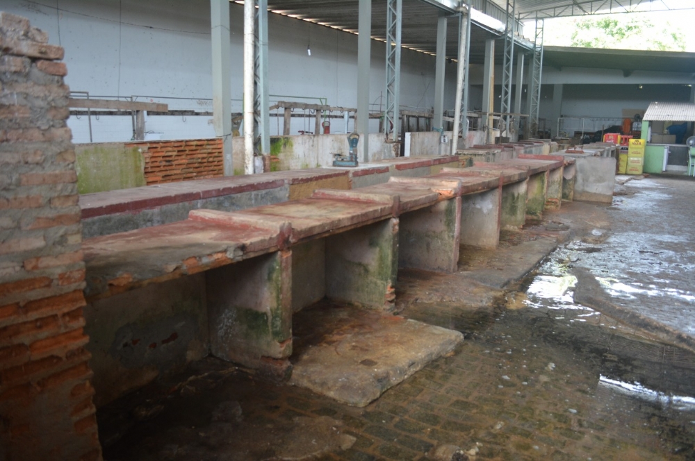 No mercado que comercializa peixe, foram constatados diversos problemas: alguns estruturais (na parte de edificação) e outros de condições sanitárias (praticamente inexistente, instalações e higiene precárias).
