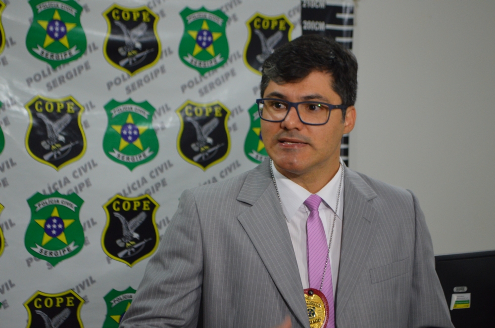 O delegado Hugo Leonardo, do Centro de Operações Policiais Especiais (COPE), deu detalhes na tarde desta quinta-feira, 12, sobre a operação que resultou na prisão de seis homens na manhã de hoje no bairro Santa Maria, em Aracaju, e na morte de outros três em confronto. Um dos presos, segundo o delegado, é José Domingo Assis Santos, que estava de licença médica, mas era funcionário de uma empresa terceirizada e atuava no Presídio do Santa Maria.