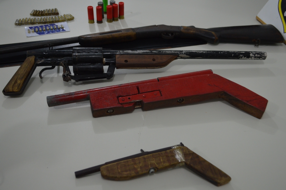 Os policiais efetuaram a apreensão de drogas, seis armas de fogo, sendo duas espingardas caseiras calibre 12, uma espingarda calibre 36, dois revólveres calibre 38 e uma pistola calibre 38.