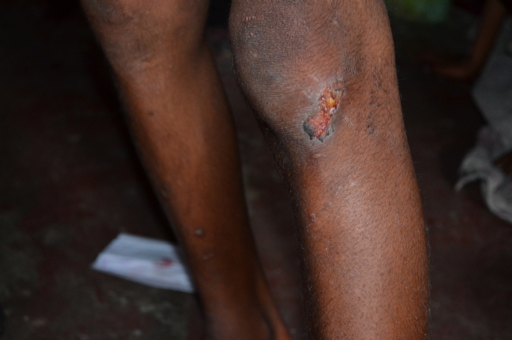 | Criança exibe joelho ferido: seria uma das marcas das agressões (Fotos: Cássia Santana/Portal Infonet) |