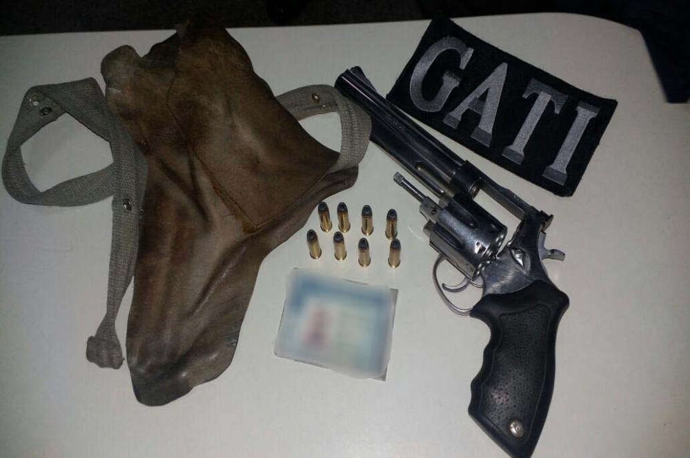 O Grupo de Ações Táticas do Interior realizou no domingo, 25, por volta das 20 horas, a prisão de um indivíduo que portava uma arma de fogo, nas imediações da Rua A no Bairro Santos Dumont.