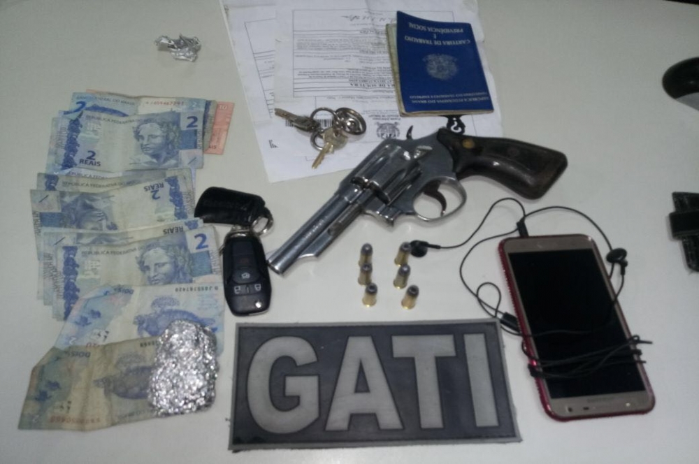 A Polícia Militar por meio do Grupo de Ações Táticas do Interior (GATI) realizou a prisão de três pessoas e a apreensão de um adolescente, deslocando-se em um táxi em poder de uma arma de fogo e portando uma pequena quantidade de maconha em um local conhecido como rota de fuga no Conjunto Jardim, na madrugada desta quinta-feira, 18.