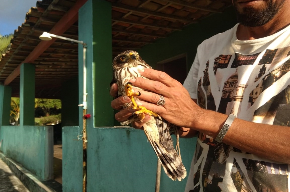 As biólogas relataram que a ave era jovem, mas apresentava ferimentos em uma das patas e tinha dificuldade para se manter em pé. Ainda segundo elas, um dos olhos do pássaro estava ferido e foi necessário realizar um procedimento de limpeza e aplicar uma medicação paliativa antes de seguirem viagem. “No local encontramos o animal bastante debilitado. O morador nos disse que ele não queria se alimentar. O animal estava com uma fratura em uma das pernas e com inflamação em um dos olhos”, informou a técnica ambiental, Aline Borba.