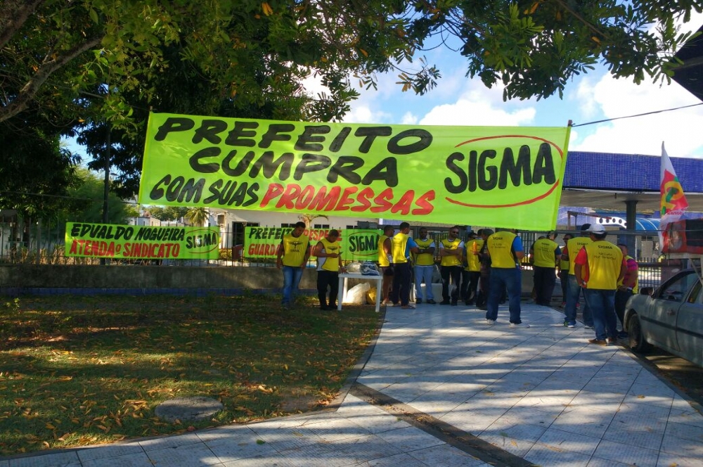| Ato dos guardas na porta da PMA (Foto enviada pelo Sigma) |