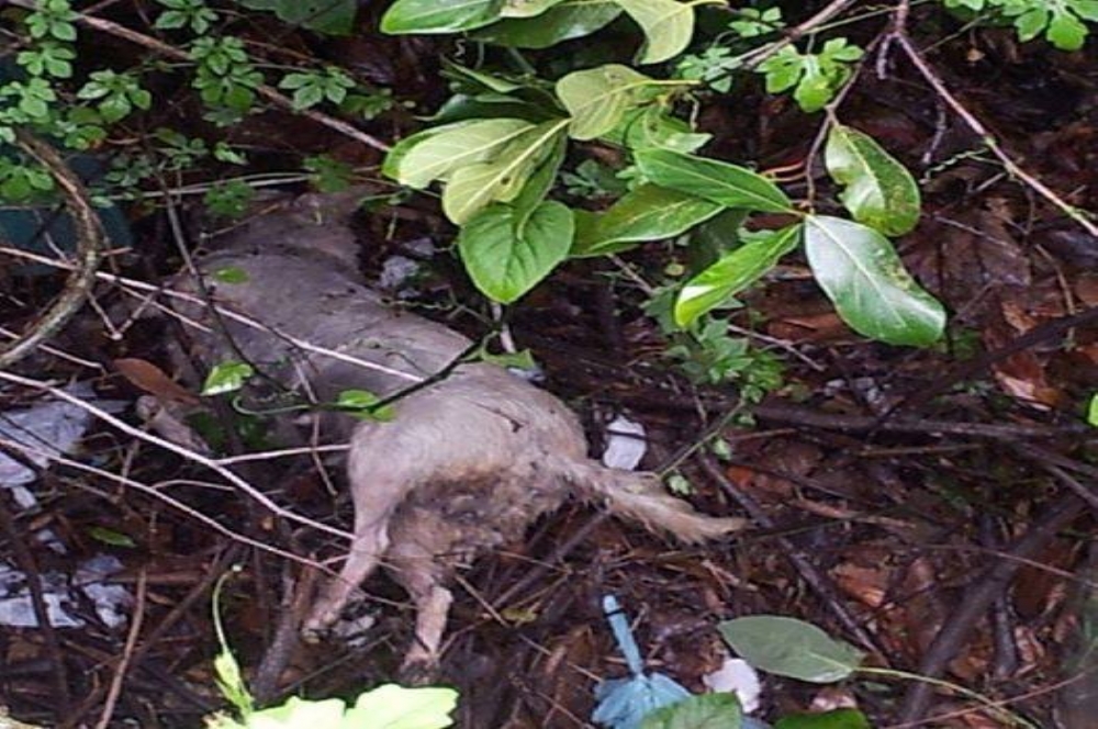 Cadela abandonada no terreno baldio (Foto: Divulgação/ ONG Animais Amigos) |