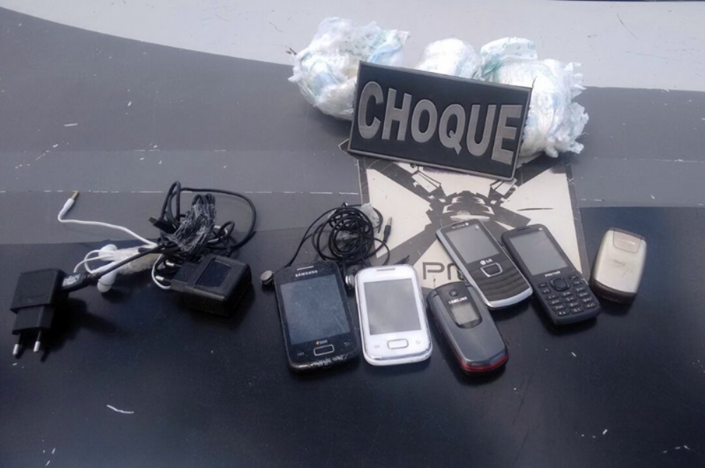 Durante a ronda, os policiais perceberam um homem arremessando uma trouxa revestida por fraldas descartáveis por cima do muro do presidio. Após a varredura do local, foram encontradas mais duas trouxas, contendo seis celulares, dois carregadores e dois fones de ouvido.