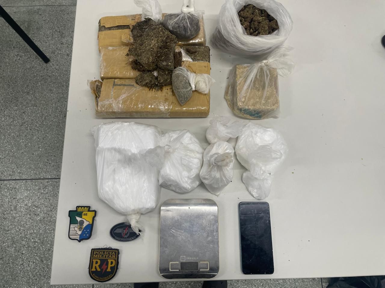 Durante a abordagem, a equipe encontrou um tablete de substância análoga à maconha e, em seguida, o suspeito indicou que havia mais drogas escondidas embaixo de uma cama, onde foram localizadas 186kg de cocaína, 3,5kg de maconha e 800g de crack, além de uma balança de precisão.