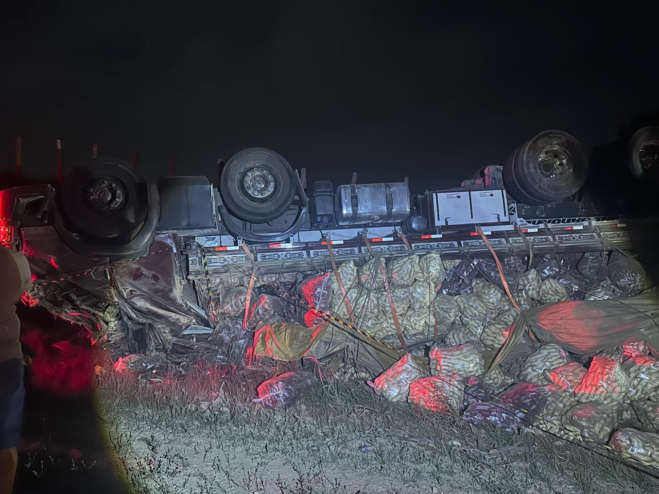 Um homem morreu e dois ficaram feridos após um caminhão sair da pista e capotar na noite desta quinta-feira, 4, na rodovia SE-245, no município de Malhador.