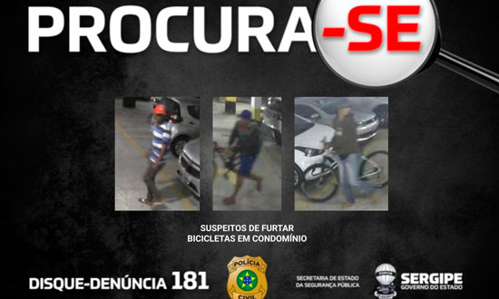 A Polícia Civil, por meio da 4ª Delegacia Metropolitana (DM), divulgou, nesta quinta-feira, 16, as imagens dos homens que furtaram 15 bicicletas da área da garagem de um condomínio residencial do bairro Farolândia, em Aracaju. O caso ocorreu na madrugada do dia 10 de outubro.