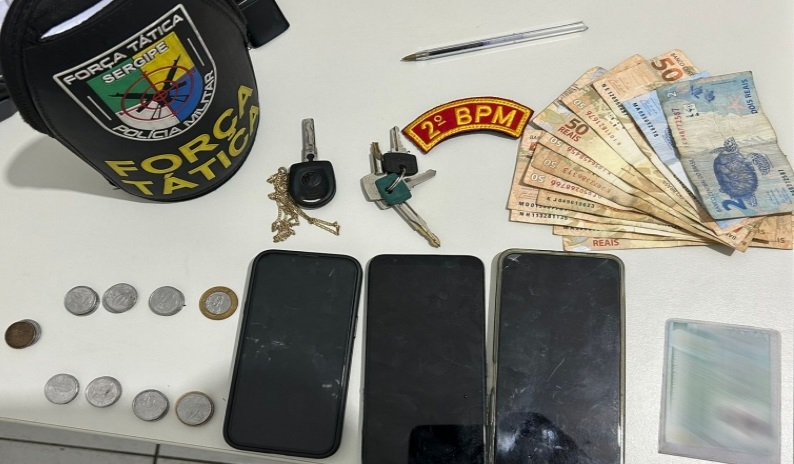 A interceptação ocorreu no trevo do município de Cedro de São João. Após a abordagem, os ocupantes foram retirados do veículo e submetidos à revista pessoal e veicular.