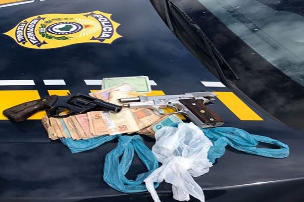 Os agentes federais iniciaram deslocamento pela rodovia e na altura do Km 43 da BR 235, visualizaram o veículo suspeito que desobedeceu a ordem de parada dos policiais. Durante o acompanhamento tático os homens jogaram pela janela um revólver calibre .38 com seis munições e uma pistola calibre .380 com quatro munições. Com eles, a polícia também encontrou duas sacolas com mais de R$ 10 mil em espécie.