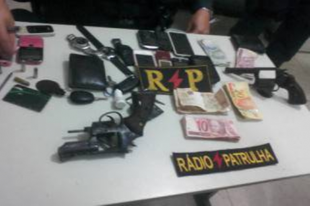 | Material apreendido com os assaltantes (foto: Rádio Patrulha) |