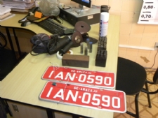 Depois disso, a polícia flagrou os dois bandidos tentando mudar a placa da carreta”, explicou Antônio. Instrumentos que seriam usados na adulteração da carreta