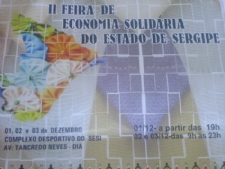 Com o objetivo de construir novos tipos de relações econômicas e sociais por meio da valorização da cultura, meio ambiente e da cidadania, começa hoje, 1, às 19h a II Feira de Economia Solidária de Sergipe. O evento que acontecerá até domingo, 3, no Complexo Desportivo do SESI, situado na avenida Tancredo Neves, terá atividades como palestras, shows, oficinas, exposições, cortejos e rodadas de negócios.