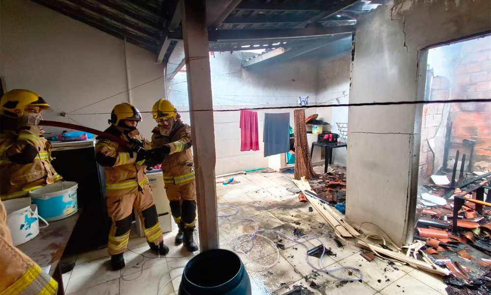 De acordo com a corporação, moradores relataram que o fogo pode ter sido provocado por uma vela e atingiu o último cômodo da casa. Apesar do susto, não houve registro de feridos.