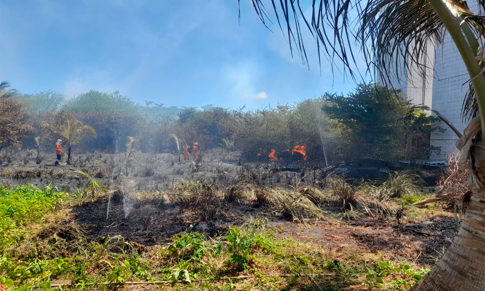 Um incêndio em um terreno baldio mobilizou equipes do Corpo de Bombeiros Militar de Sergipe (CBMSE) na manhã desta quinta-feira, 5, na Rua Dr. José Calumby, no bairro Suíssa. A área atingida fica nas proximidades da Vila Militar. A atuação rápida dos bombeiros evitou que as chamas se espalhassem e alcançassem imóveis vizinhos.