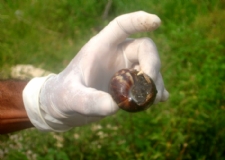 Os animais encontrados devem ser coletados com o uso de luvas. Os caramujos devem ser depositados em latões e podem ser fervidos esmagados ou queimados. Por conta do mau cheiro, é necessário que os animais sejam enterrados em um buraco revestido com cal virgem, se possível. Em caso de contato direto com o caramujo, a pessoa deve lavar bem o local com água e sabão.