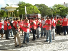 Policiais militares reuniram-se em frente à Assembléia Legislativa na manhã de hoje, 4, para pedir auxílio do Poder Legislativo na luta por um reajuste salarial em equilíbrio com o concedido à Polícia Civil. Os representantes das Associações Unidas dos Policiais criticaram a postura do Governo, mas continuam com esperança de que o canal de negociações seja retomado por uma comissão de deputados.