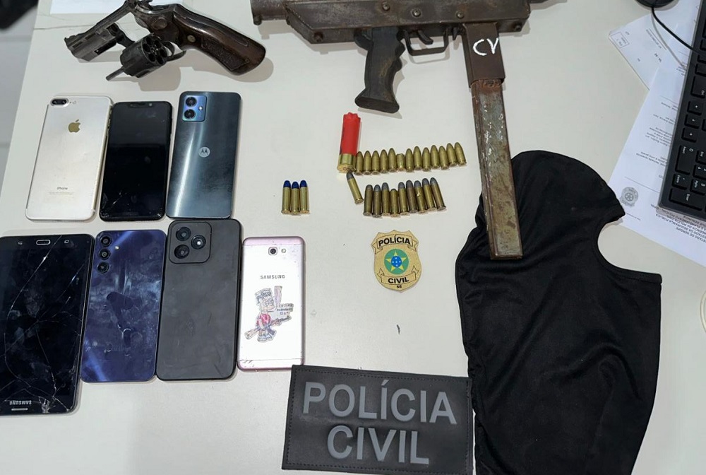 Na operação, as equipes apreenderam uma submetralhadora calibre 9mm, um revólver calibre .38 e prenderam outros dois suspeitos. Também foram encontradas inscrições em muros associadas ao grupo criminoso, que serão removidas com apoio da Prefeitura de Estância.