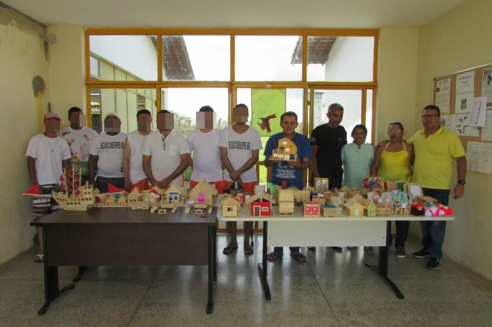 Cerca de 500 brinquedos artesanais feitos por internos do Complexo Penitenciário Dr. Manoel Carvalho Neto (Copemcan) foram doados à creche Ação Solidária Almir do Picolé para o natal das crianças nesta terça, 19. Os brinquedos foram feitos com palitos de picolé e cartolina.
